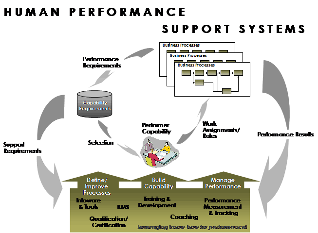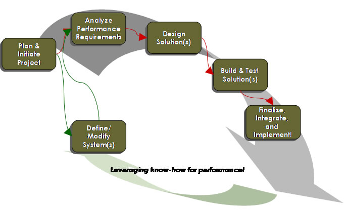 At the beginning, a scope is defined. As the project goes forward, that scope serves as the guiding vision. If it is to be changed, it is done on purpose, not by default. The most important decision is figuring out what solution will be implemented. Figuring Out the "What"There are always more opportunities and ideas than there are resources to take advantage of them. Key to any engagement is determining what the business issues are, and what we should do about them. This process begins by collecting data, from evaluating current vs. desired performance to analyzing process steps and measures, and even including detailed task analysis. The solution needs to be based on solid business rationale, but it also needs to fit other factors and constraints, such as available resources, what has been tried before, organizational culture, and others. Figuring out what to do is only the beginning. Too often, people jump from deciding on the solution to beginning to build it, like deciding you want a two-story home and then going to the lumberyard to buy wood! The design process plays a critical role in figuring out and communicating specifically how the solution(s) will work so that problems are addressed upfront, rather than showing up as fires and "gotcha's" later. Like any other system engineering approach, we also believe in testing, roll-out, and communication so that the system(s), and the people using it, can get up and running (and tuned up if needed) effectively. Systems engineering and design are familiar to companies that manufacture complex products, such as computers or airplanes. But, human performance solutions require the same level of attention (though not as much resource) as human performance solutions are also complex and have a number of interrelated components. Our expertise is assessing, designing, building, and implementing effective human performance support systems. Training and Knowledge Management System DesignMany companies waste a lot of resource building and operating ineffective training and knowledge management systems. Many others waste more by leaving training and knowledge support to chance. Employees gain the capability to perform by learning. Either they learn before they are hired, they learn by experience (that is, by making mistakes the first time and avoiding them in the future), they work with a coach and "watch and learn," or they are formally trained in advance being expected to perform. Most of the time, it is a combination of all of the above. What is the best approach? It depends. Most new employees need to learn a lot. But, even experienced employees need to learn when the job changes, such as when new products are introduced, when processes or tools are changed, or even if the underlying skills for the job change. How much training is enough? It depends. What the employees must learn is a combination of information, knowledge, and skills. In total, they need to develop the capability to perform the job. Capability is relative. Some jobs can tolerate more variability in capability than others. Some jobs require less capability because of information or performance support tools. Some require a great deal of skill while others require expert knowledge. What is the best way to ensure your workforce has the capability it needs? It depends. Question: Training is pretty straightforward isn't it? What has to be designed? Answer: There are a number of related systems and processes that work together to deliver content to your audience groups. You need plan out how new content will be treated in each system (or even if new systems are needed). A list of the key systems is shown in the table below.