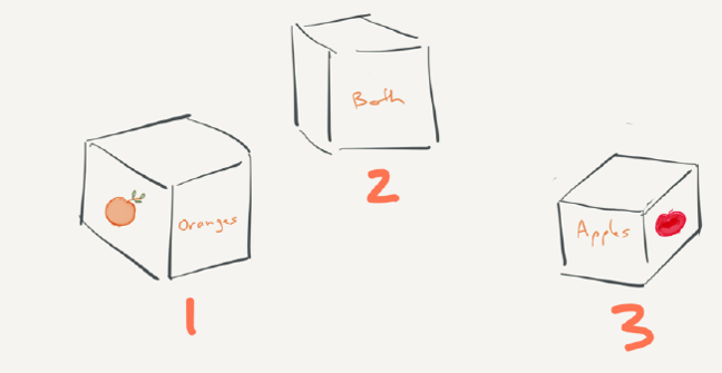There are three boxes. One contains only apples, one contains only oranges, and one contains both apples and oranges. The boxes have been incorrectly labeled such that no label identifies the actual contents of the box it labels. Opening just one box, and without looking in the box, you take out one piece of fruit. By looking at the fruit, how can you immediately label all of the boxes correctly?"